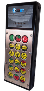 The Warrior product line consists of two, three and ANY-STEP push button transmitters as well as small medium and large mill-duty console boxes for multi-step and step-less applications. This family of transmitters is supported by a variety of Warrior receivers designed to accomplish any material handling application. The Warrior’s flagship product, the HHMS model, is an industry first transmitter that can provide two, three and ANY-STEP buttons from our proprietary multi-step switch. This contact-less switch is factory configured. In two step configurations offers fully redundant 1st and 2nd step commands. The three step version offers a low cost alternative to applications requiring three speeds in that you do not have to move to a traditional console box for such an application. The ANY-STEP configuration offers an INDUSTRY FIRST SEVEN STEP solution that can be applied to applications desiring 4-5 speeds or step-less control in a push button handheld solution. This unique features coupled with the 70+ hours of operating time form the lithium ion rechargeable battery and standard OLED display make the HHMS a power packed, feature rich solution for handheld material handling applications.